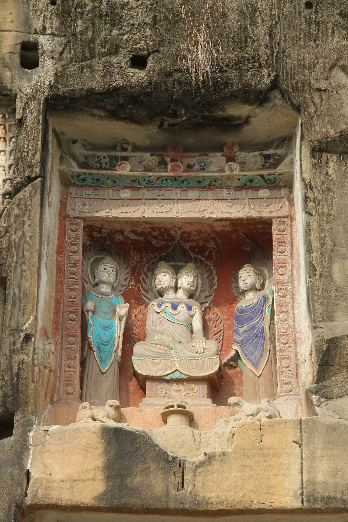 公元三世纪左右,作为传播佛教的艺术使者,石窟艺术从古印度经过西域传到中国。南北朝佛教兴盛,佛教造像也达到第一次高峰。南北朝晚期,随着西魏北周军事上对南朝蜀地的征服,佛教信仰进一步进入到四川地区。在雷玉华和程崇勋编著的《巴中石窟》里,对巴中石窟的渊源和流变做过详细论述。