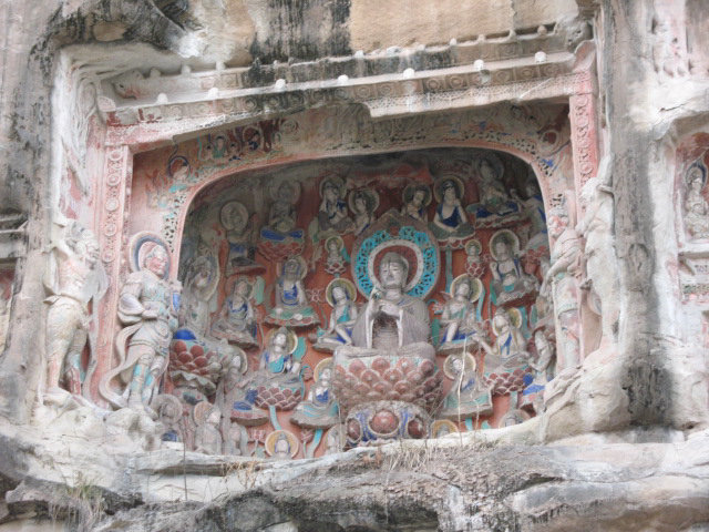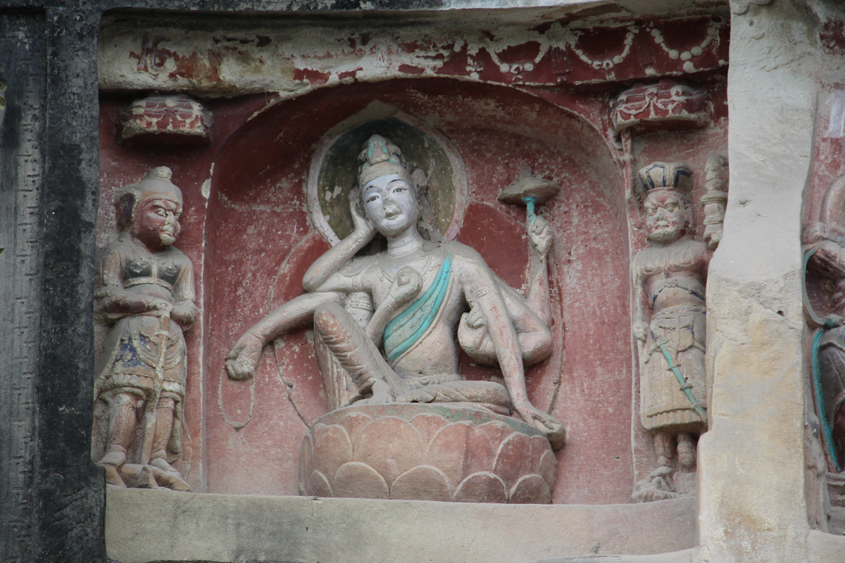 除了在二京地区找到源头,巴中石窟还受西域经由河西传来的艺术风格影响。从西域至河西走廊南下后,向南经秦州(主要是经甘肃南部的天水境内),再向东南至兴元府境内与米仓道南段相合,可以进入巴中。在南龛石窟的题记中,“秦州僧”“凉商”等文字,说明了这条道路的存在。