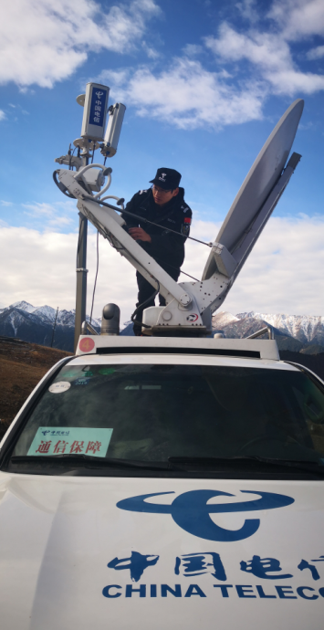 随后,由6人携带7部卫星电话,驾驶1辆卫星车和2辆通信指挥车,赶赴海拔4200米的森工村山顶,于当日9:40开通卫星应急信号,用于保障中转指挥部和堰塞体主要抢险区域的通信信号覆盖,并启动24小时通信保障。