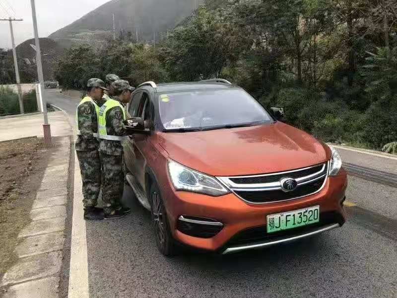 G318线巴塘境内路段由于上次堰塞湖路基冲毁,加上目前堰塞湖随时可能发生险情,存在极大安全隐患,实行交通管制,当地人武部及时组织民兵来到卡口,逐一劝返过往车辆。