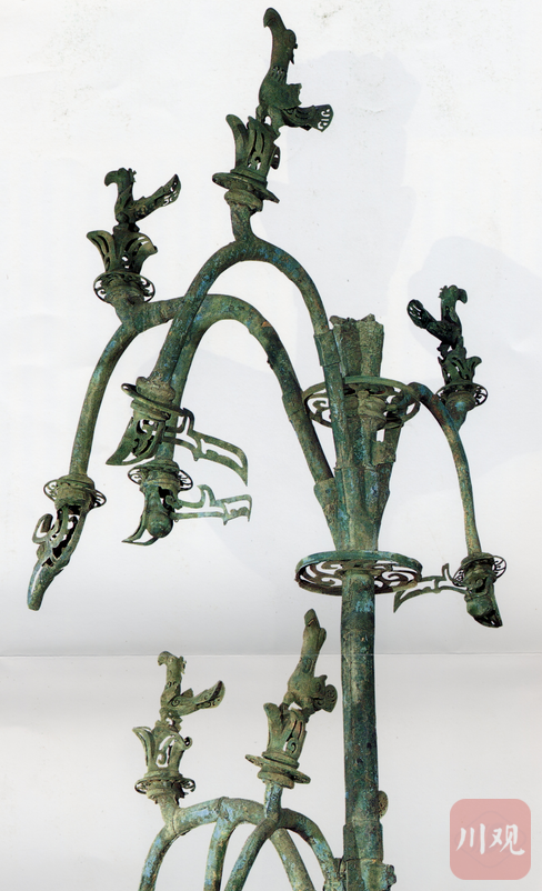 神树的魅力可以跨越山海,但去往美国展览的计划却没有那么顺利。梁旭仲介绍,神树刚被发掘出来的时候,是一堆碎片,经过近十年的的研究,文物修复专家才将这两千多块碎片复原为高达3.96米的神树。