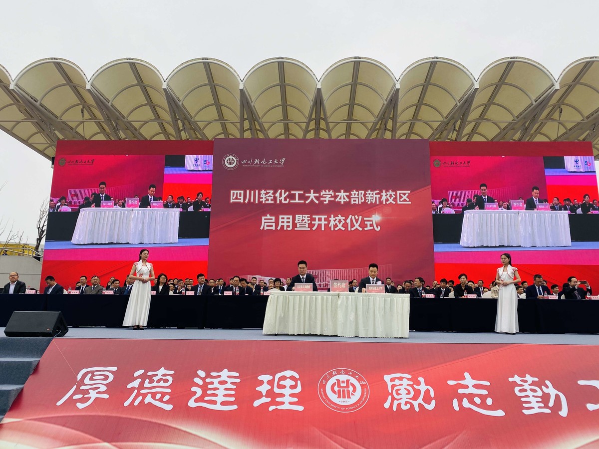 3月19日,四川轻化工大学本部新校区在自贡东部新城正式启用,该校区总投资44亿元,占地面积836.8亩,建筑面积44万平方米,共有23个单体建筑,包括学生宿舍、食堂、实验楼、图书馆、彩灯艺术馆、美术学院、音乐学院、运动场等,可满足该校1.5万人的学生教学规模。