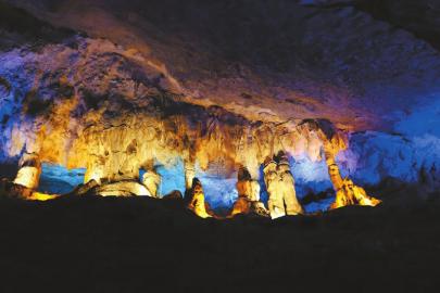 在这里,从水滴到钟乳石、石笋,所有溶洞景观形成、生长、成型、衰老的全过程,游客们均可在洞中一探究竟。“走走看看,可领略岩溶景观全景、可知晓地质演化轨迹。”一名业内专家表示,古郎洞是一个罕见的集溶洞生长全过程遗迹和全部溶洞景观品类于一体,并且正在生长的溶洞。