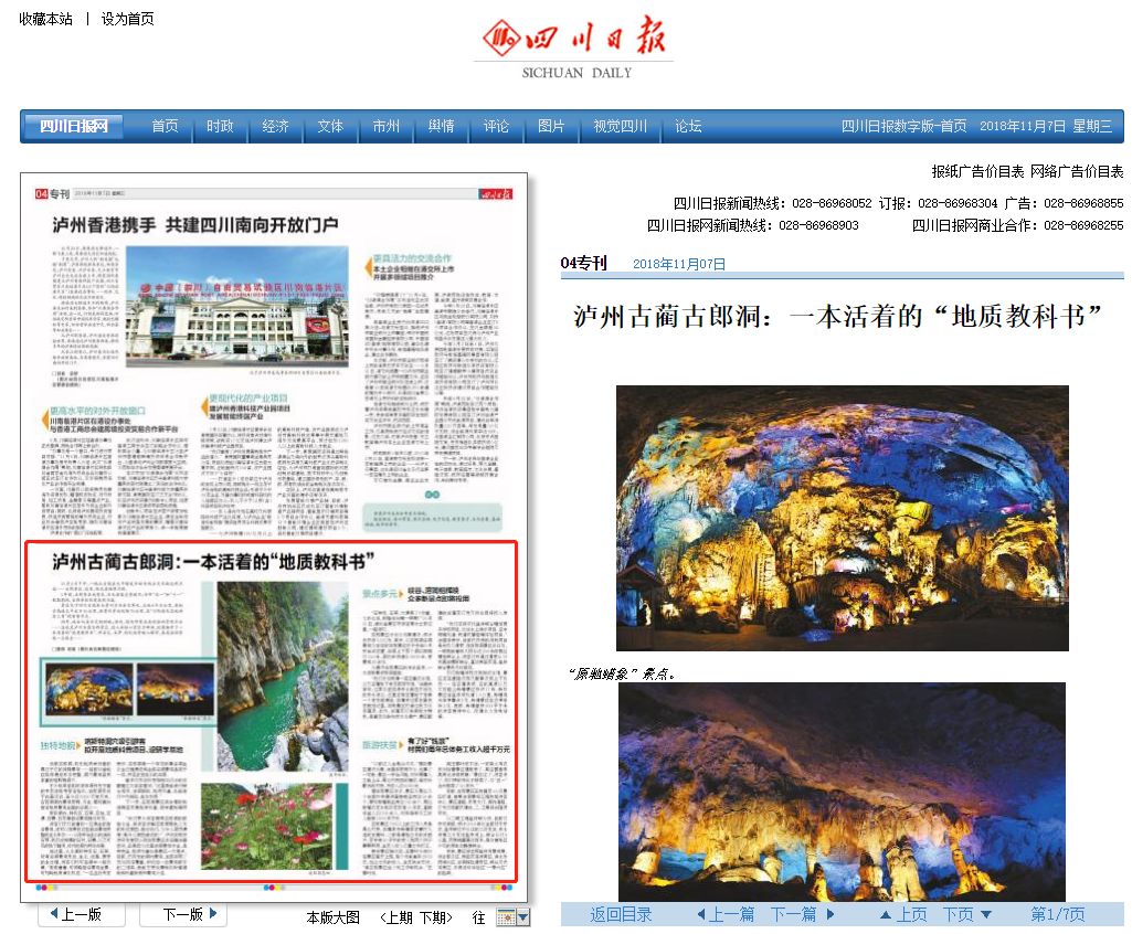 “我们想为游客展现古郎洞的前世今生,向游客讲解古郎洞特色之处的形成原因,告诉他们,为什么洞顶漂亮?是什么原因造成的?”泸州古郎旅游开发有限公司古郎景区总经理涂国学说,正是因为这里溶洞景观齐全、品类完备,地质科普也是景区一大亮点。目前,已开发的洞内景观,全部实现了无线网络覆盖,手机扫一扫景观前方的二维码,就能方便快捷地收听普通版和科普版两种景观介绍。