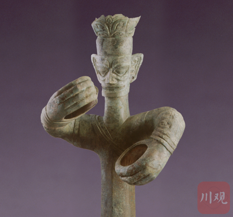 1986年,在四川广汉三星堆遗址2号祭祀坑出土的青铜立人像曾轰动全国、乃至世界。人像那双与身体不成比例的大手最为引人关注,他双手一高一低,环抱在胸前,手部呈虚握状,似乎在手中拿着一件什么物品。