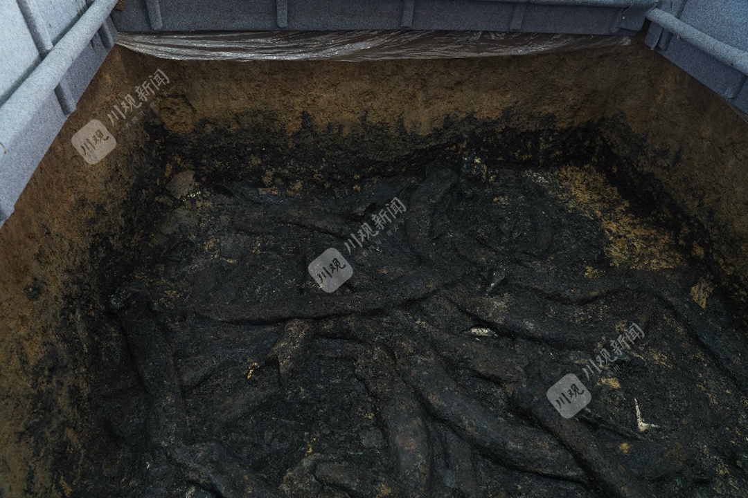 “三星堆这次象牙的保存情况差异很大。”吴顺清从现场回来后说道,比如4号坑中发现的象牙,看起来是一根根的,但推测是因为被火烧过的缘故,表面附着不少竹子灰烬,且象牙彼此堆叠,因此提取难度较大,而三号坑的象牙因为没有烧过的痕迹,则情况稍好一些,处理方式就不尽相同。