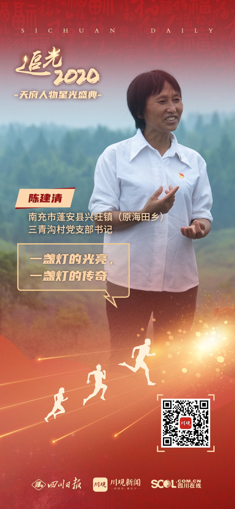 成为三青沟村媳妇的她,率先拉通电线,点亮三青沟第一盏灯;成为代课老师的她,一干就是24年,点燃一盏盏心灯,照亮了200个孩子走出大山路;当选村支书的她,带领三青沟村光荣摘掉“贫困帽”。陈建清,南充市蓬安县兴旺镇(原海田乡)三青沟村党支部书记,获全国脱贫攻坚奖奋进奖、全国脱贫攻坚先进个人。
