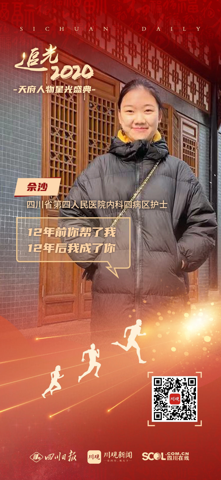 12年前的特大地震中,12岁的汶川女孩佘沙见证了全国各地对灾区人民的无私援助。新冠肺炎疫情发生后,四川组织医疗队驰援武汉,身为护士的她第一时间报名,多次请战。到武汉后,又主动申请调到最艰苦的院区。她说,这个时候她一定要挺身而出,因为她是“汶川女孩”。佘沙,12年前你帮了我,12年后我成了你。