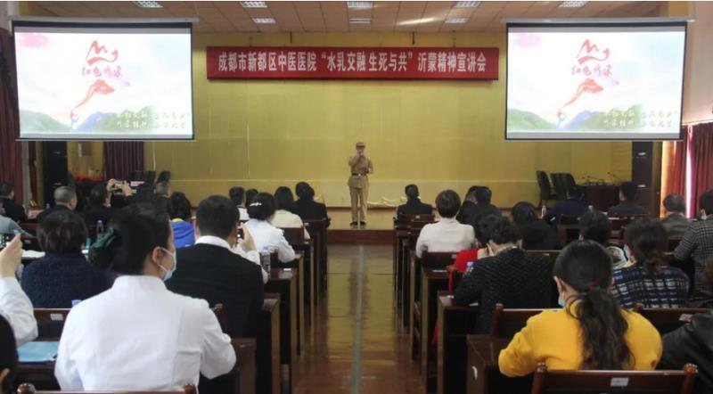 3月15日,医院组织召开了“水乳交融 生死与共”沂蒙精神宣讲会。来自沂蒙革命老区的沂蒙精神宣讲队成员,采用情景再现、角色扮演等形式,通过党群心连心、拥军永支前、日月换新天、时代谱新篇四大篇章内容,真情讲述了沂蒙精神的形成、传承发扬以及在新时期践行发展的先进典型,为片区党员干部呈现了一堂形式新颖活泼、内容感人奋进的红色文化艺术党课,深刻诠释了“爱党爱军、开拓奋进、艰苦创业、无私奉献”的沂蒙精神的新时代内涵。让全场人员感动不已、潸然泪下,赢得了在场观众的阵阵掌声。