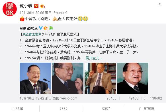 上周金庸老先生去世,
