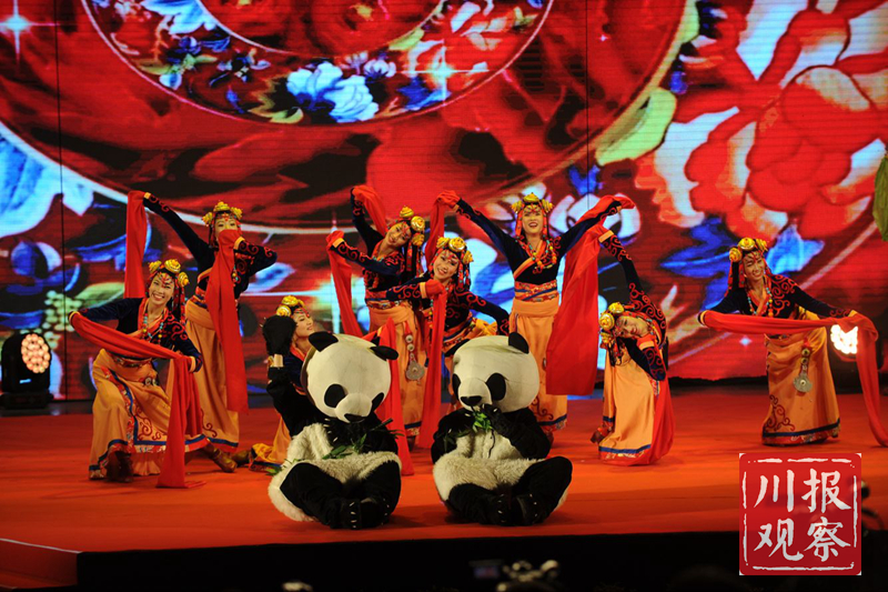 11月8日,在独具四川民族特色的舞蹈表演中,两只萌萌哒的“大熊猫”登上了舞台,“川港澳合作周”系列活动——2018四川自然保护周在香港海洋公园开幕。