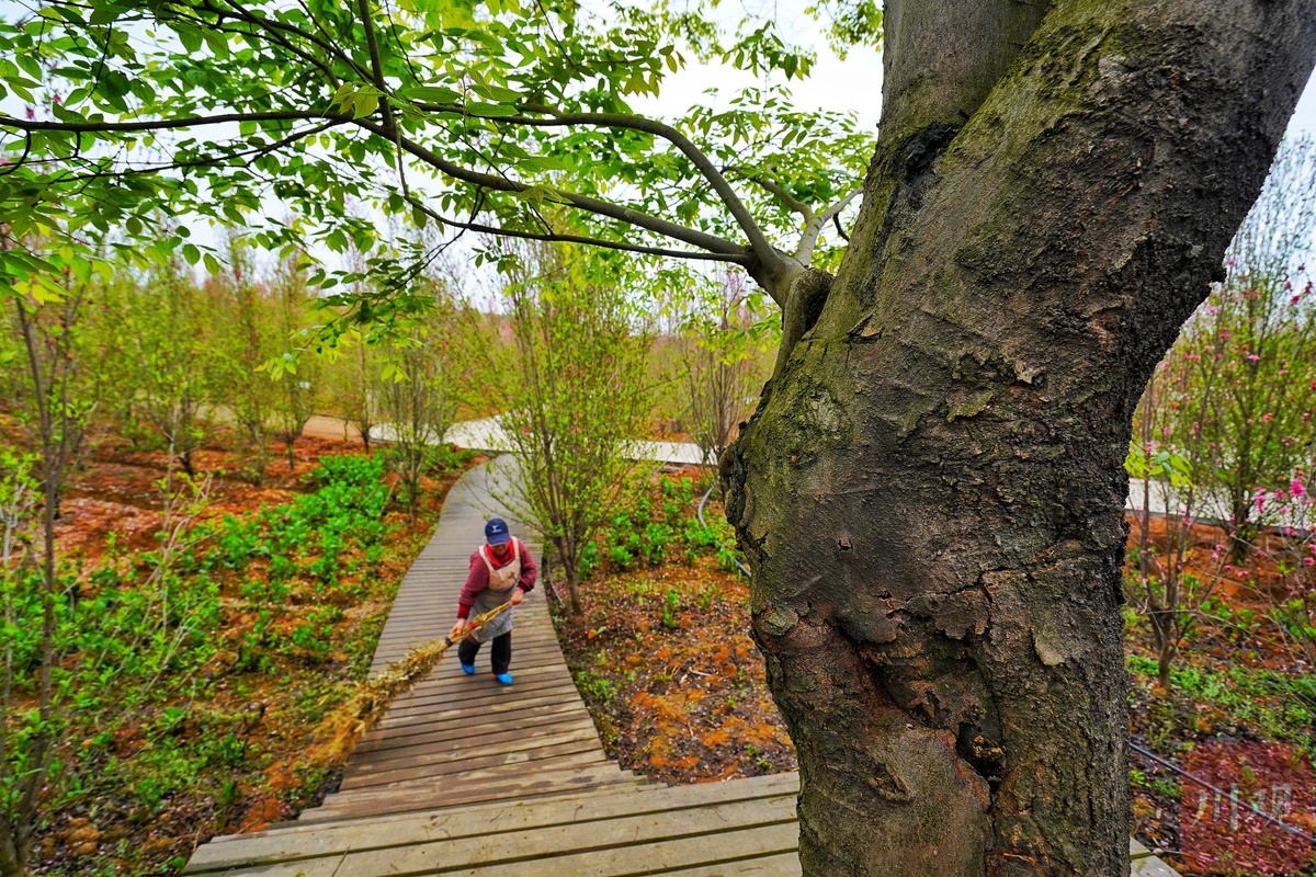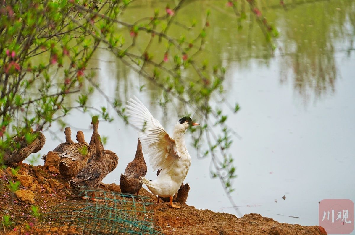 过安州车行几里的百花乐园内,“游人不管春将老,来往亭前踏落花”的唯美的古诗下,凌落满园的梨花、樱花,正艳的海棠和绽放的牡丹,透过蔷薇栅栏的绿荫小径,池塘边三两只饮水展翅的麻鸭为此景更显诗情画意。