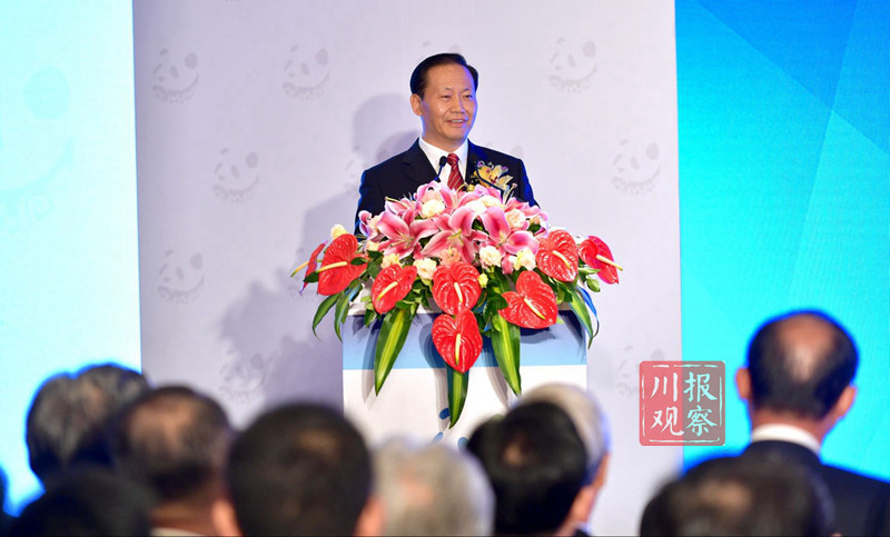 彭清华在致辞中现场向与会嘉宾推介四川,娓娓道来、生动风趣、故事精彩,全场掌声笑声不断。