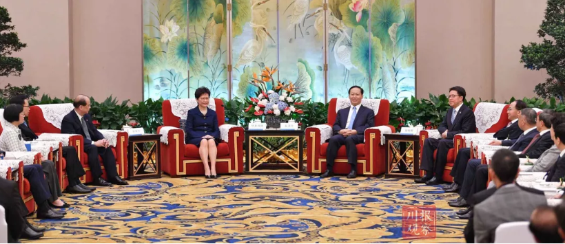 5月11日上午,四川省委书记彭清华在成都会见香港特别行政区行政长官林郑月娥及香港特区政府代表团一行。