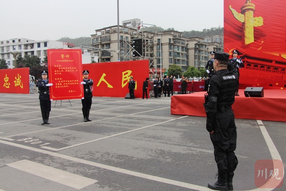 “筑牢政治忠诚 护旗百年华诞”。3月21日上午,雅安市政法系统护旗誓师暨教育整顿承诺大会举行。方队气势恢宏,人员精神饱满,充分展示了雅安全市政法干警昂扬向上的作风能力,同时这也是建党100周年安保维稳工作的集体动员,以及深入开展政法队伍教育整顿的庄严承诺。