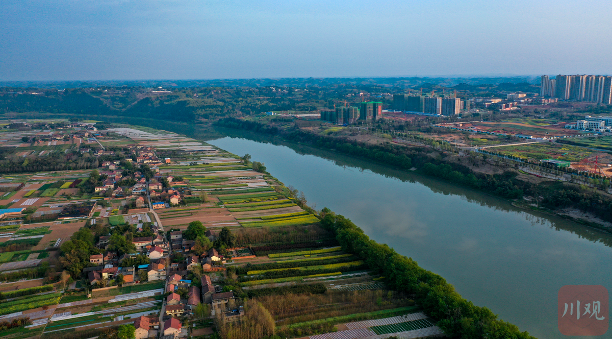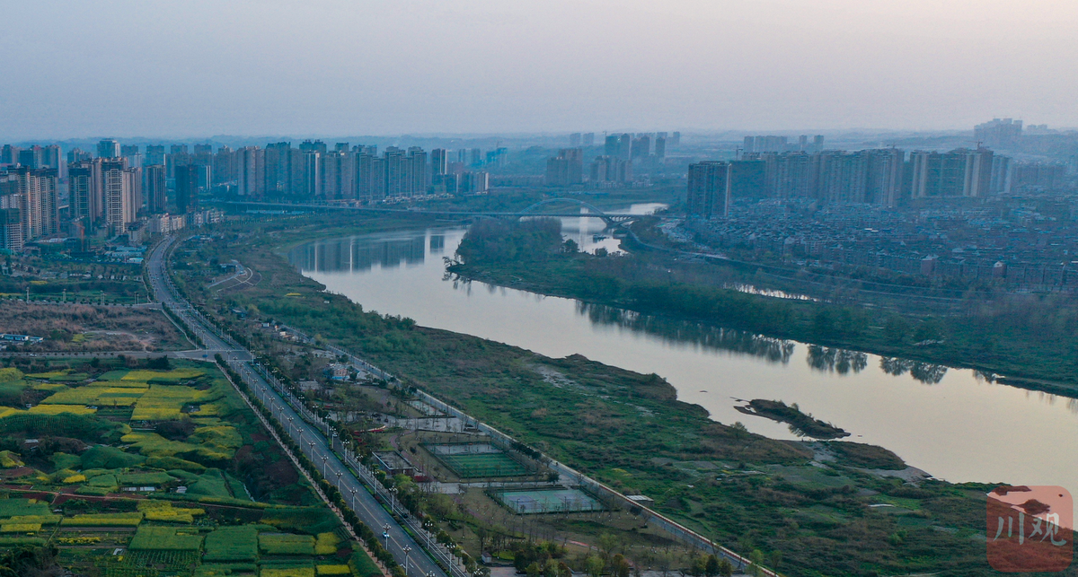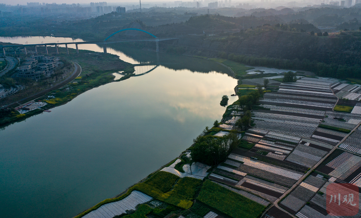 3月,世界水日到来之际,资阳市雁江区雁江镇内的沱江静静流淌着,沱江在这里形成了大回湾,两岸的农田点线面交错与江水形成了美丽的画面。沿着沱江修建的健身步道已经成为市民锻炼身体的好去处。