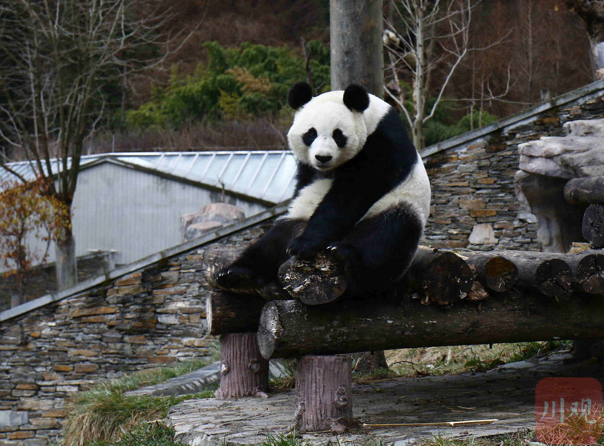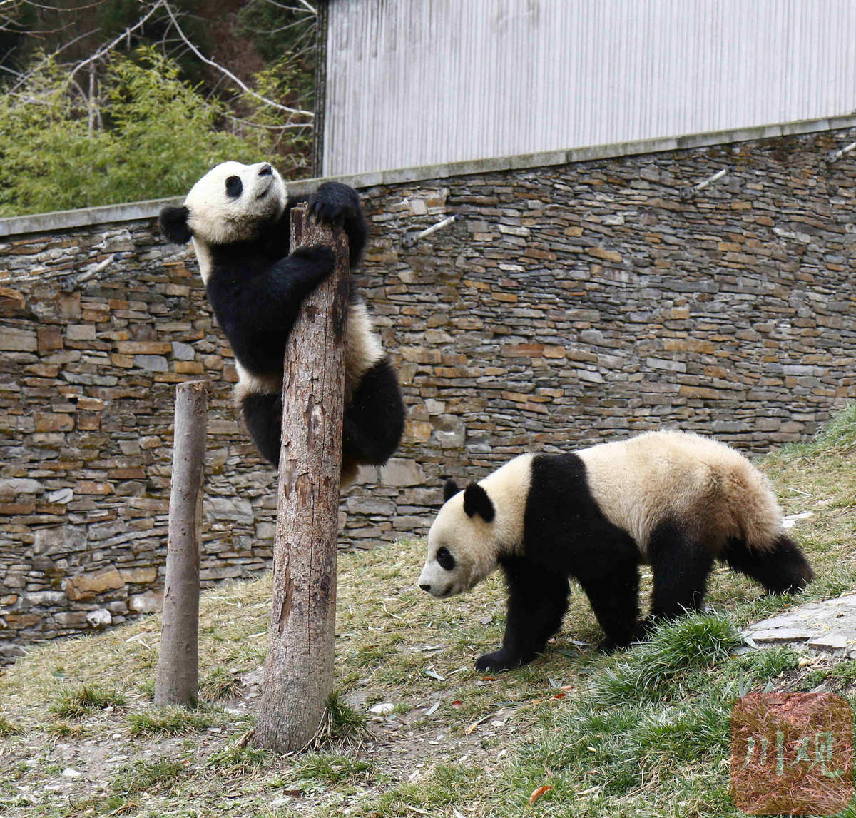 中国大熊猫保护研究中心耿达神树坪基地玩耍的大熊猫。