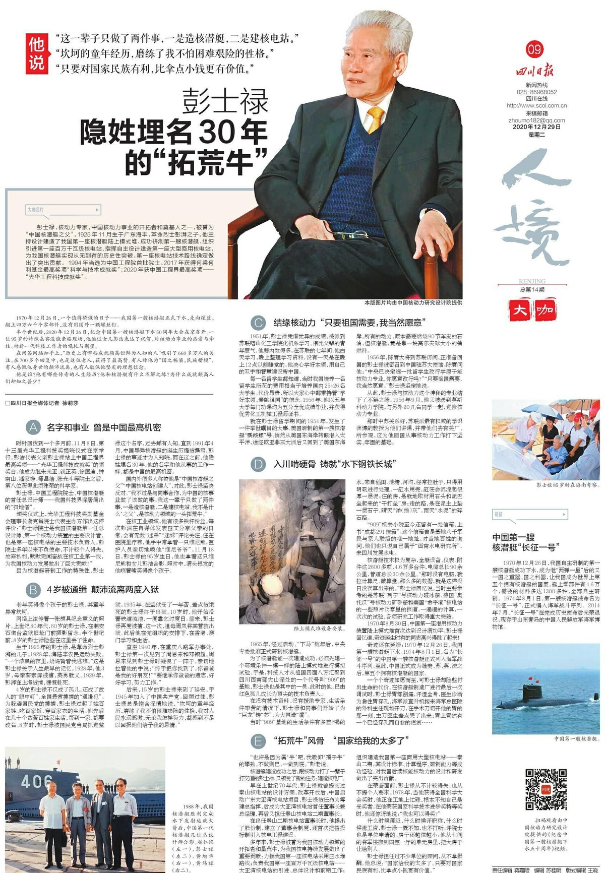 中国第一艘核潜艇下水50周年之际,川观新闻记者遍访彭士禄院士亲友、同事,以《彭士禄:一头隐姓埋名30年的“拓荒牛”》为题,介绍了他的传奇一生。