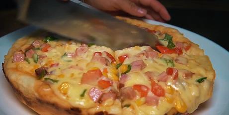 有次家人吃饭,桃子姐像往常一样,在厨房里忙前忙后,烧火做饭。午饭时间到,她端出来一个平底锅,锅里是一整块冒着热气的圆圆大披萨饼。披萨饼上撒着切成丁的火腿肉、玉米粒、洋葱、青椒等,没有披萨酱就用番茄酱代替,面饼煎得外焦里嫩,搭配得刚刚好,切开后融化的芝士“拔起了长长的丝”,无论是外貌还是口味和西餐馆烤箱里做出来的披萨都相差无几,让吃惯了烙饼、粑粑的家人们惊艳不已,在深圳工作回家的黄明感叹:“太震惊了!”