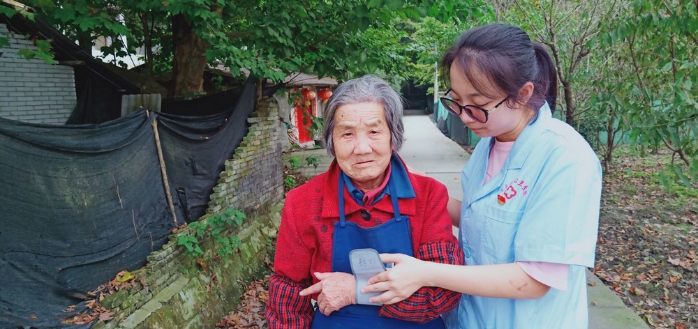 前几年,村上很多地方路比较窄,每次下乡做健康随访,团队成员们只能骑上“电马儿”,或者索性“甩火腿”。90后的黎颖是史金凤家庭医生团队的全科护士,说起和团队长下乡的经历,她总是苦中带着乐。“村里以农户居多,大家都会养狗护院,我们每次去居民家时必备一根‘打狗棒’,去的次数多了,连狗狗看到我们都不叫了。”