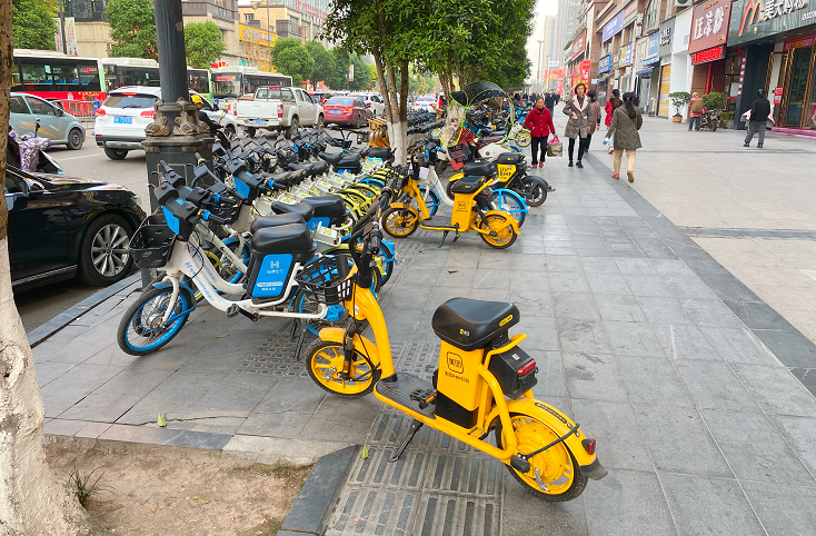 扫码、查看剩余里程、骑车出发……3月23日下午2点,住在内江邦泰国际社区的刘先生从家里出发,乘坐某品牌共享电动车前往数公里之外的运亨酒店参加一场会议,从小区出发到目的地仅花了20余分钟时间,收费3元。
