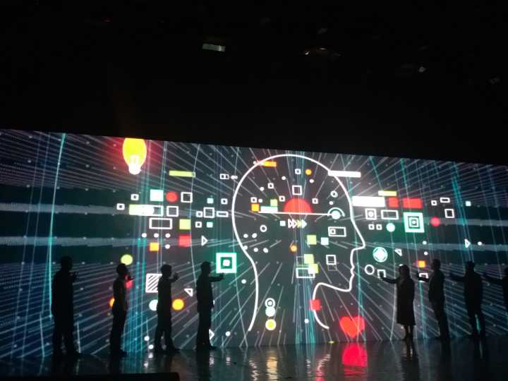 而在最神奇的表演环节中,当艺术家团队利⽤编程技术,让歌唱家的声音实时触发、控制视觉影像时,屏幕上的光线、波纹、亮片随着声音的高低而幻变,并使这些元素在现场完美交互,仿佛一个个科幻大片的片段不停刺激眼球,现场也开启了通往未来世界的大门,美轮美奂如梦中的情境,却又真实可见,一场声音和视觉碰撞出来的艺术火花,点燃了整个现场的科技氛围。