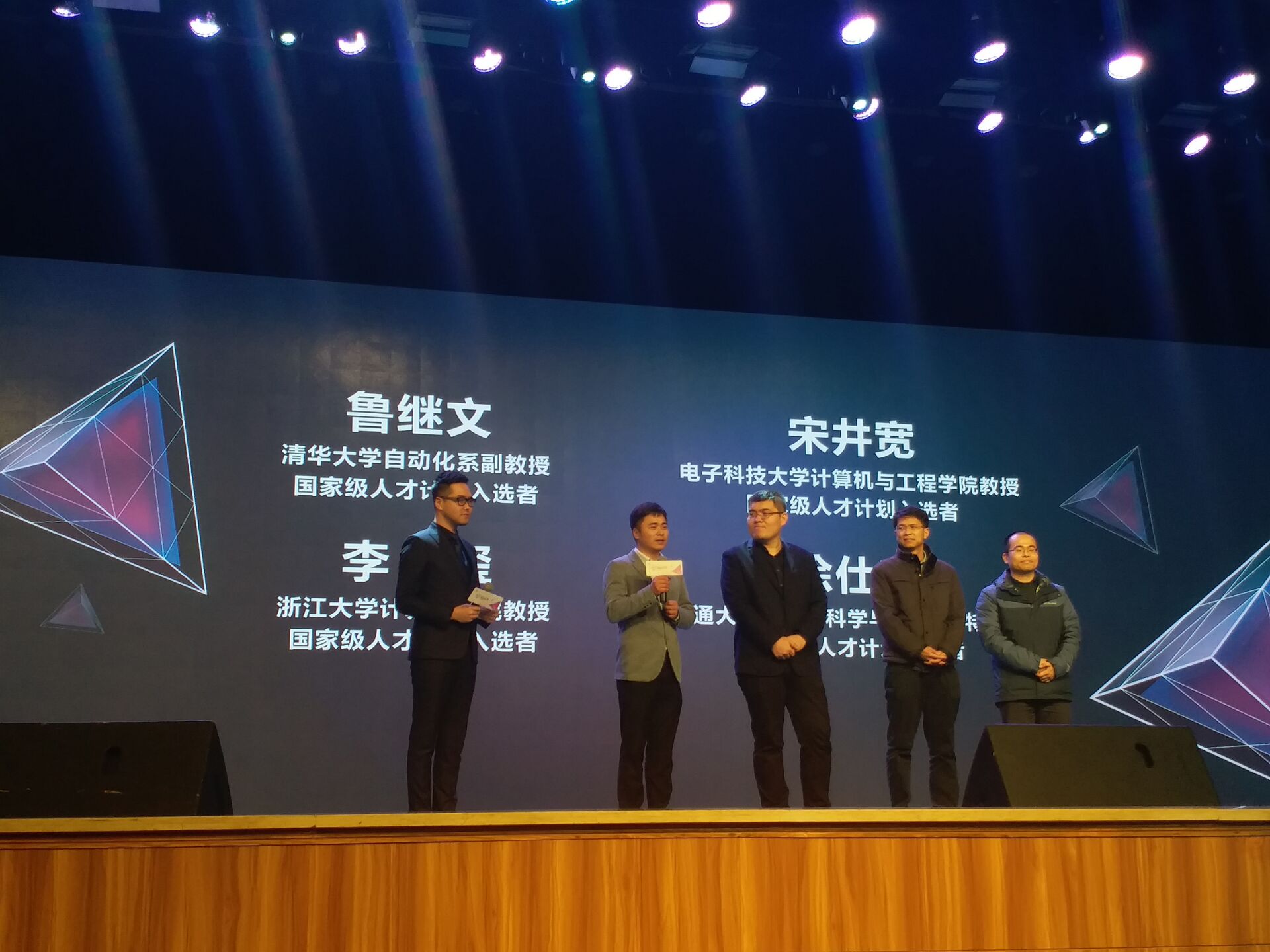 而整场发布会最吸引眼球、引爆全场的,莫过于视觉与听觉激情碰撞的启动仪式了。为了突出本次发布会“AI”元素,主办方特别邀请毕业于纽约艺术学院、蜚声国际的可视化新媒体表演艺术的先锋代表曹雨西等艺术家,为本次启动仪式演绎了一场视觉和声音的创意魔法秀。同时契合本次大赛都是80后教授团队特点,启动仪式尽显年轻、活力、想象力元素,不再使用单调的背景板,而是领导们同时上场用手触发屏幕,一个光影幻变的科技世界展现在眼前,随着画面的炸裂、变化,本次大赛的LOGO从黑幕中闪现,在未来感十足的光影世界中正式启动。