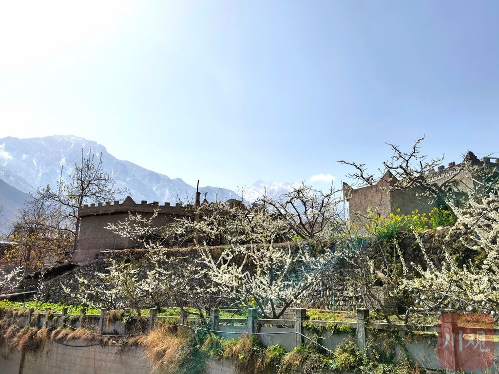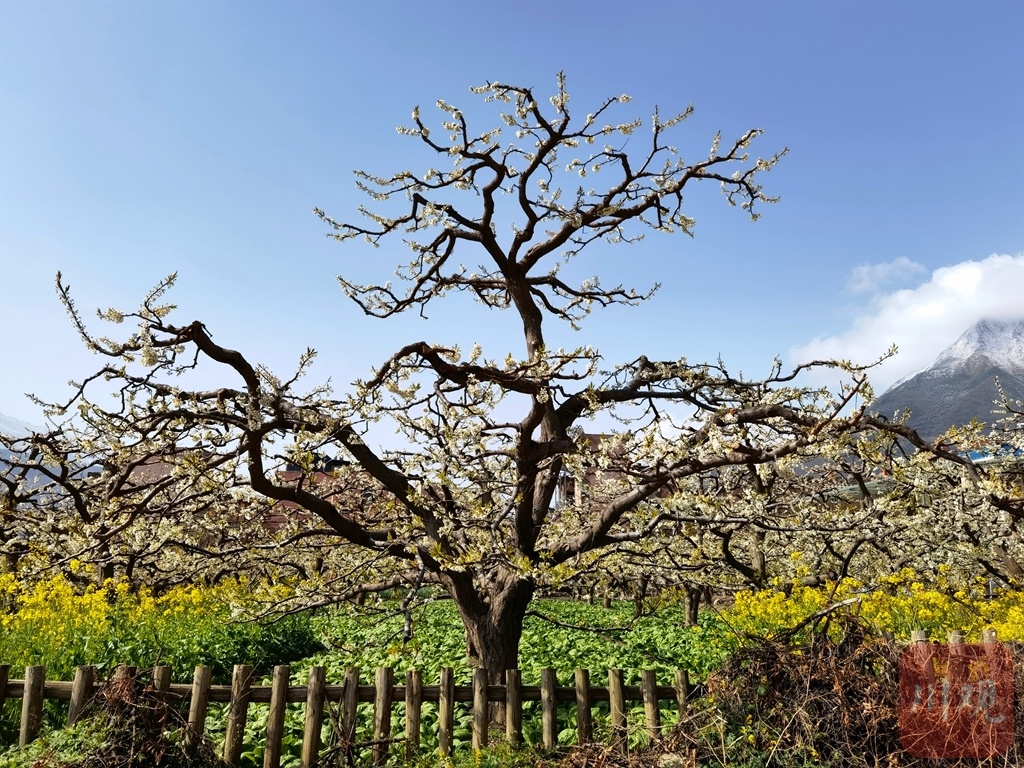 阳春三月,万物苏醒的季节,茂县各地李花,已悄然绽放。阿坝州茂县凤仪镇,娇俏的李花凝在枝头,与金黄的油菜花、独具羌族特色的屋舍交相辉映,绵延数里,构成一副副绝美的田园风光画。山顶皑皑白雪与李花仿佛给羌乡大地披上了一件“白纱衣”。