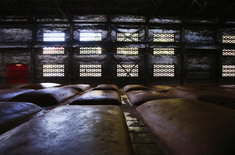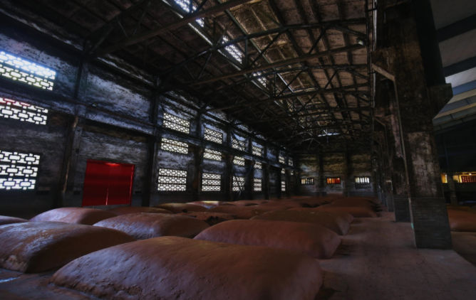 下午阳光穿过墙上的花窗,斜斜映在窖池上。座座窖池盛满粮食,被泸州本地特有的黄泥掩盖,冒出一个个鼓囊囊的“山包”。这些1573年出生的窖池群,是行业首家“全国重点文物保护单位”。“千年老窖万年糟”,“1573国宝窖池群”就是泸州老窖酒之魂。