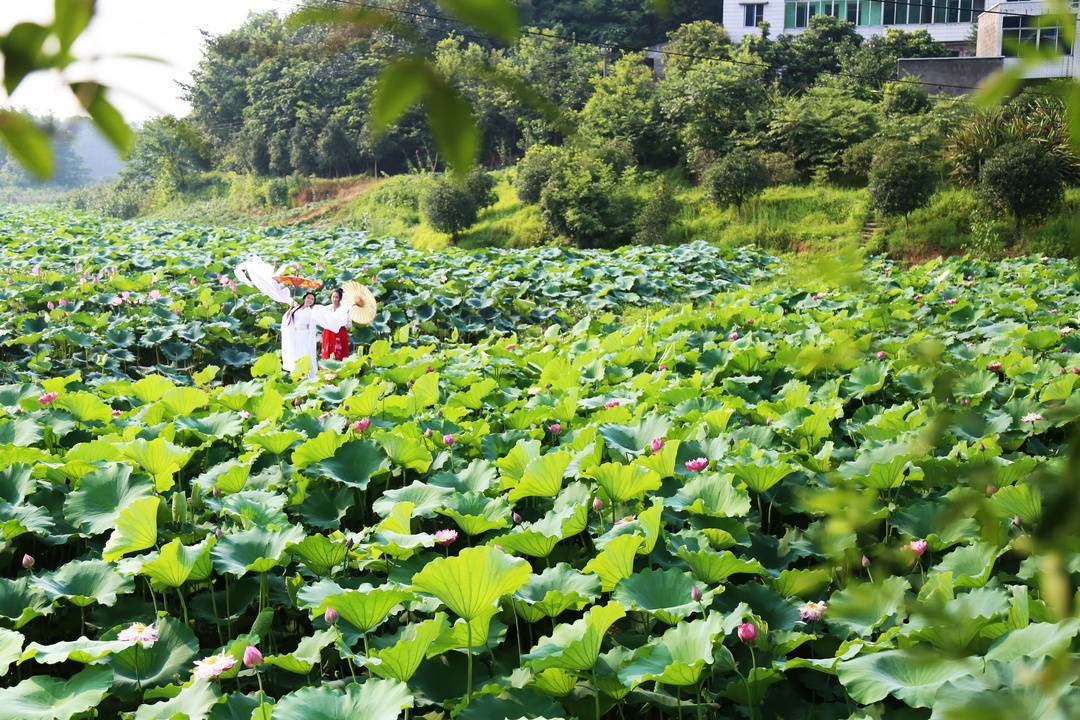 微风过处,绿叶翻浪,大片粉色荷花在一池碧绿的荷叶点缀下,娇艳妩媚、婀娜多姿,泰安街道咀阳荷花园是目前城区内规模较大的荷花基地,赏荷花、拍荷影、吃农家菜、摆龙门阵,游客携老带幼可以悠闲地耍一整天。