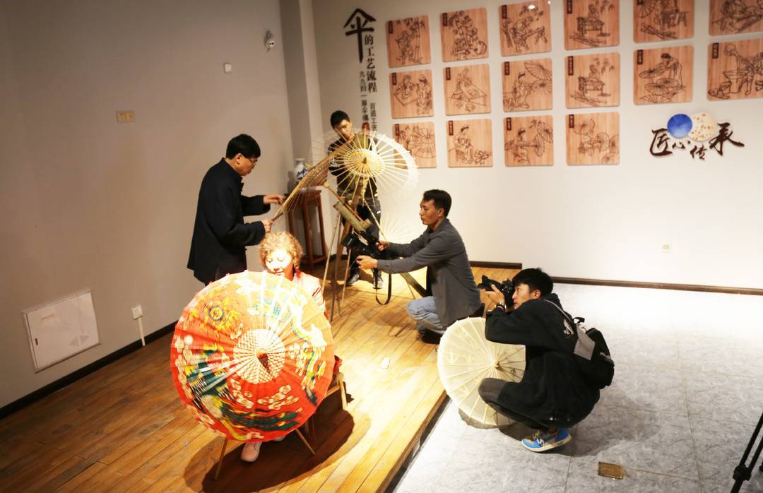 一根根线,细如丝;一根根竹,密如篾;一张张彩绘油纸,细细地刷上桐油,粘在撑起的龙骨架上……在分水油纸伞传习课堂,慕名而来的外地游客,正在体验国家非物质文化遗产——泸州分水油纸伞制作。