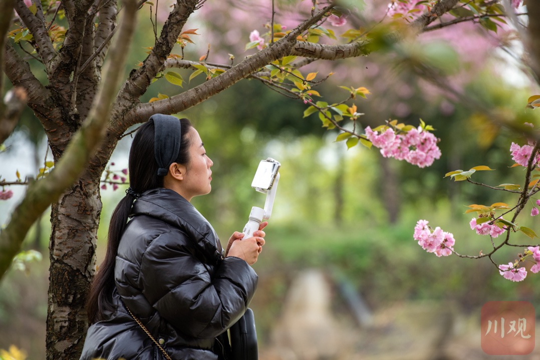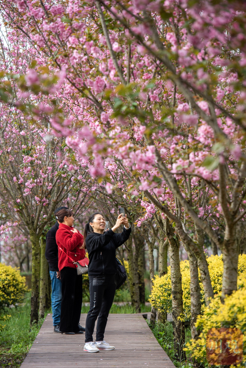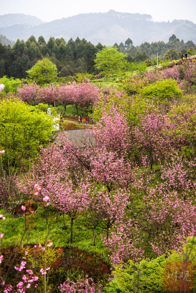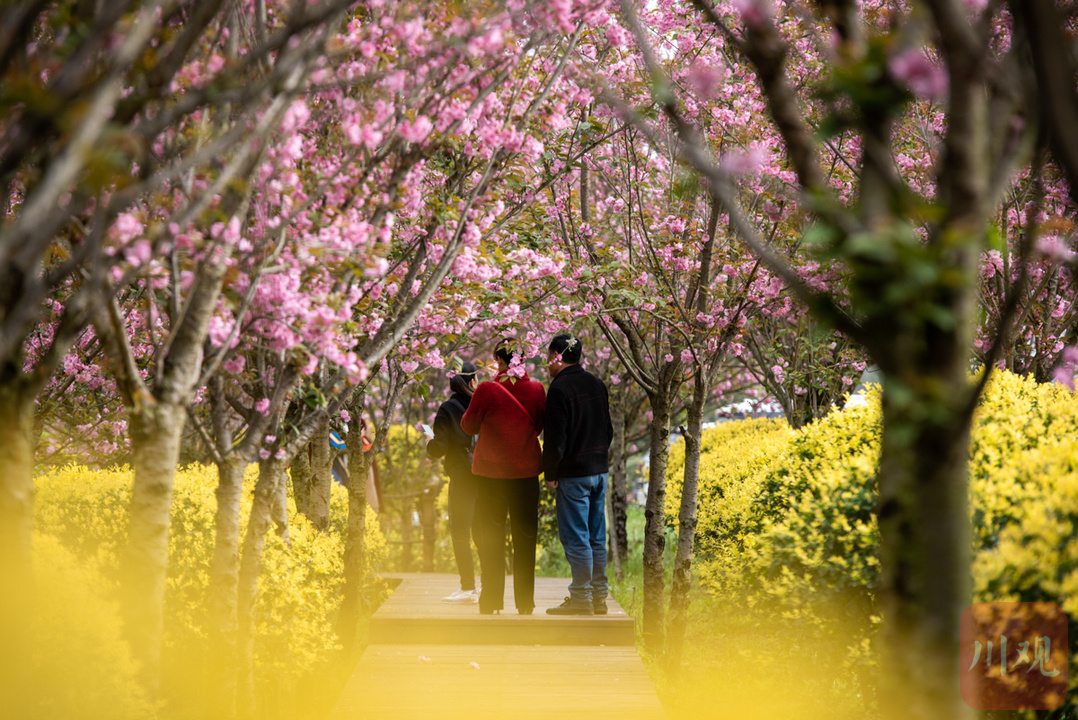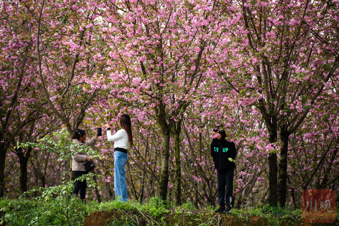 3月下旬,成都市彭州市桂花镇双红村占地300余亩的樱花山上,满山樱花已盛放。远观如霞如雾,如云似海,近赏枝繁花密,粉嫩夺目。游人如织,穿梭其间,不负春光。