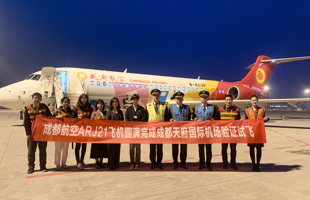 3月25日20:20分,经过多次起降、绕飞,在近4小时验证飞行后,成都航空ARJ21机型“中国梦号”彩绘飞机完成天府机场第二阶段验证试飞任务离场,标志着成都天府国际机场真机试飞工作圆满完成。