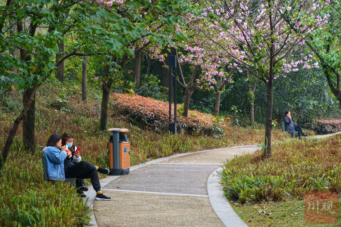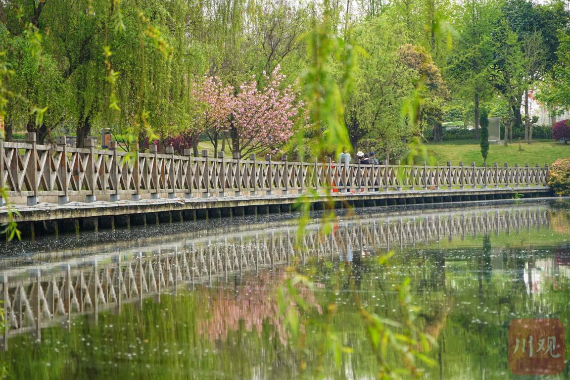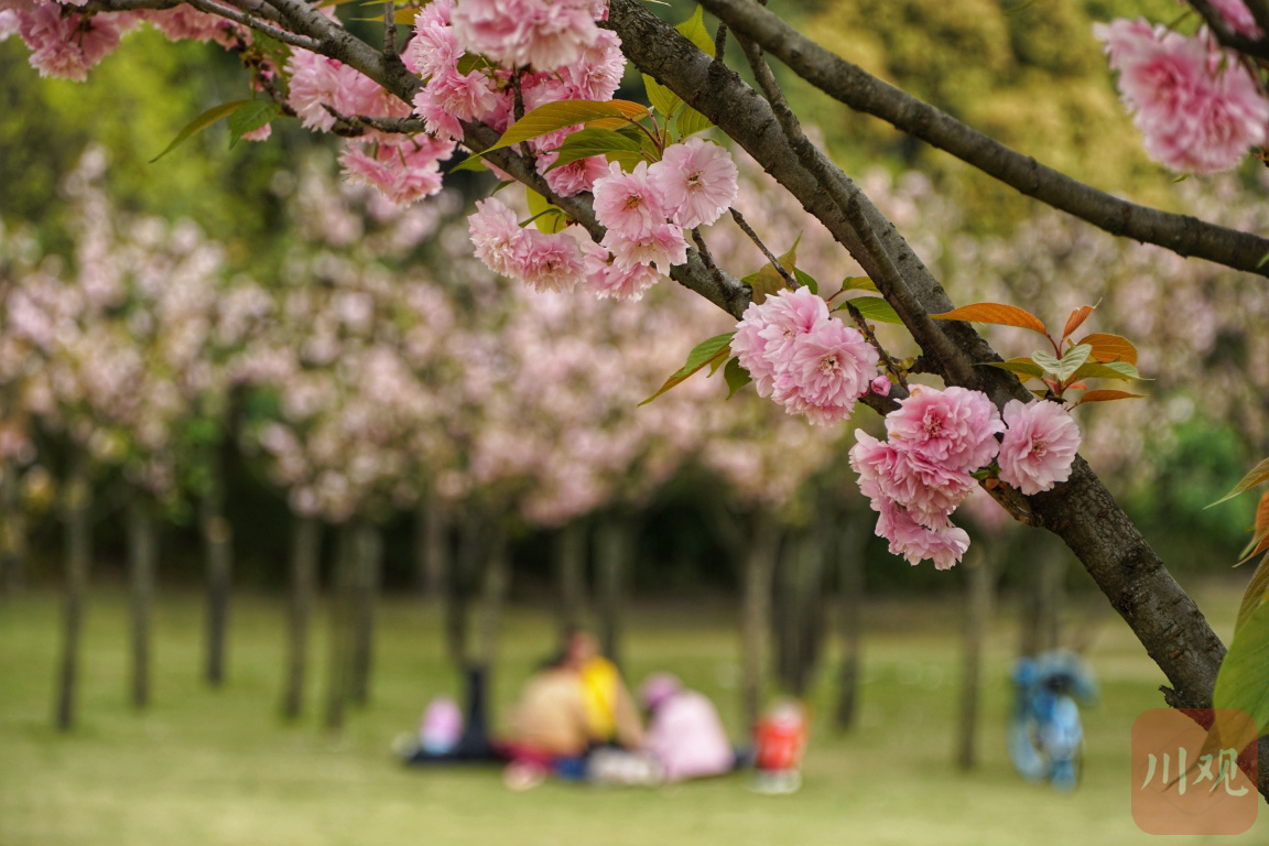 三月到处春暖花开,双流中心公园的樱花开满园,白鹭在湖上翩翩起舞,是市民休闲聚会的好地方。