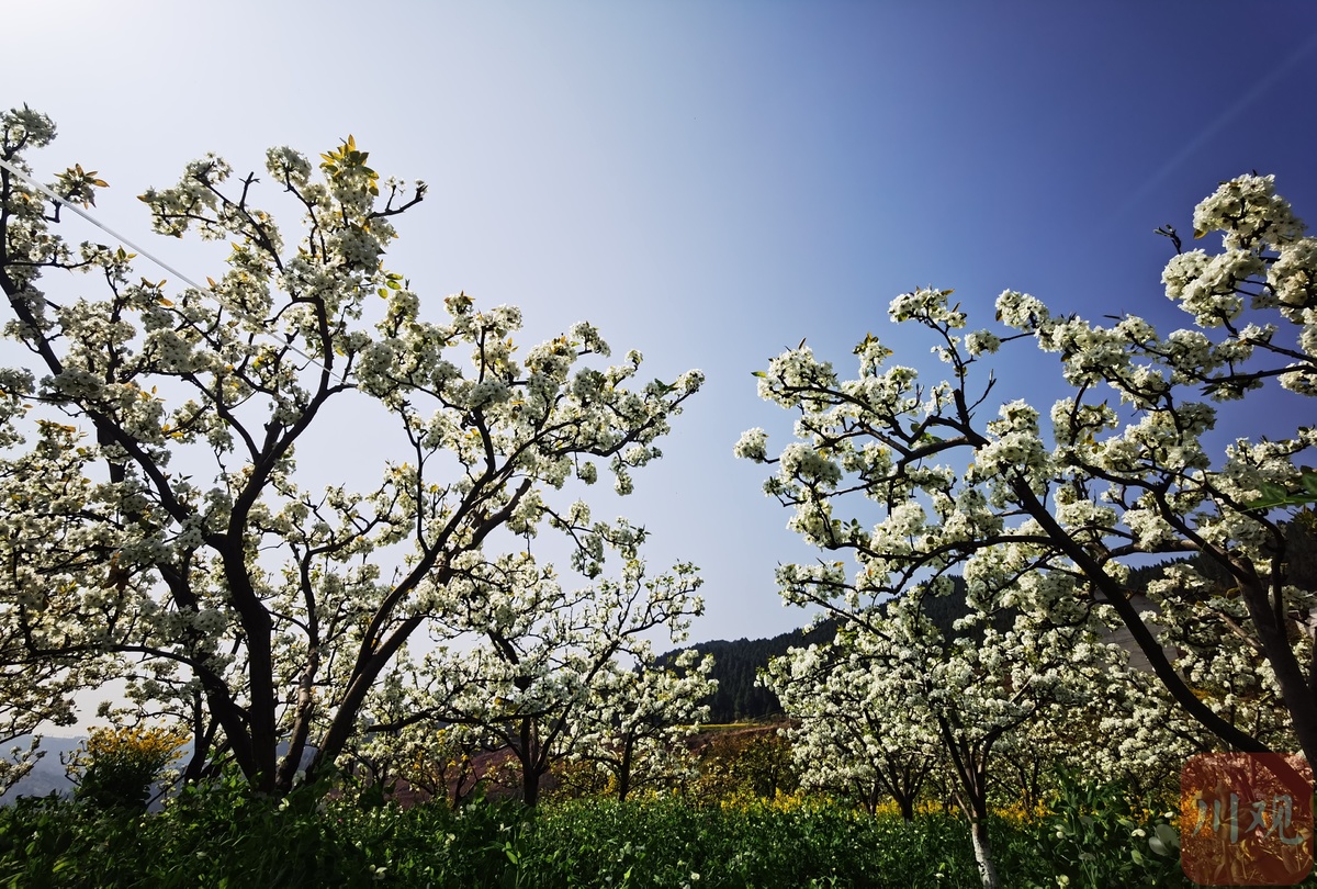 梨花千树春带雨,正是踏青好时节。广元市利州区万缘街道万和村800余亩梨花迎春绽放,吸引游客纷至沓来,感受春天气息。走进梨园内,一树树梨花争相怒放,朵朵梨花洁白无瑕、晶莹剔透。蓝天下,梨花、村庄、游人相映成趣,美不胜收。
