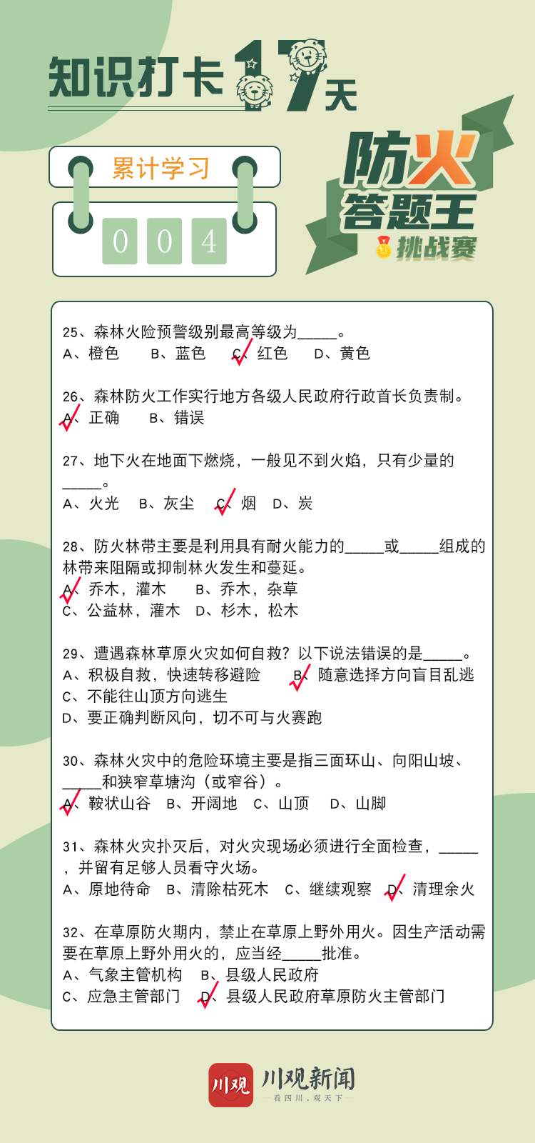 在此期间,川观新闻特别开设森林草原防火知识小课堂,派发知识卡。一起学习参与答题赢奖励吧。