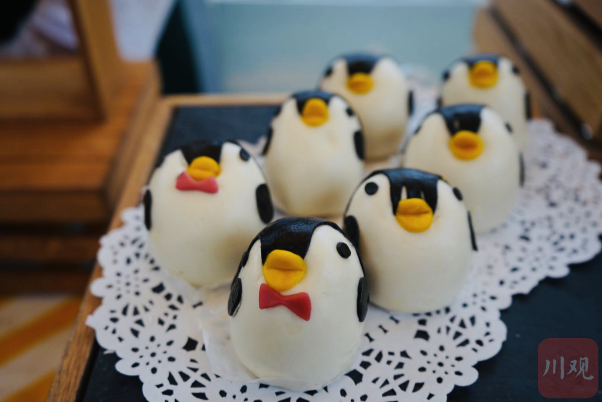 活动现场,展示给游客的创意企鹅小馒头。魏冯摄