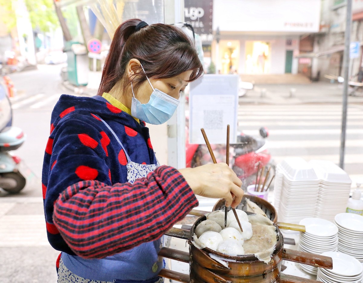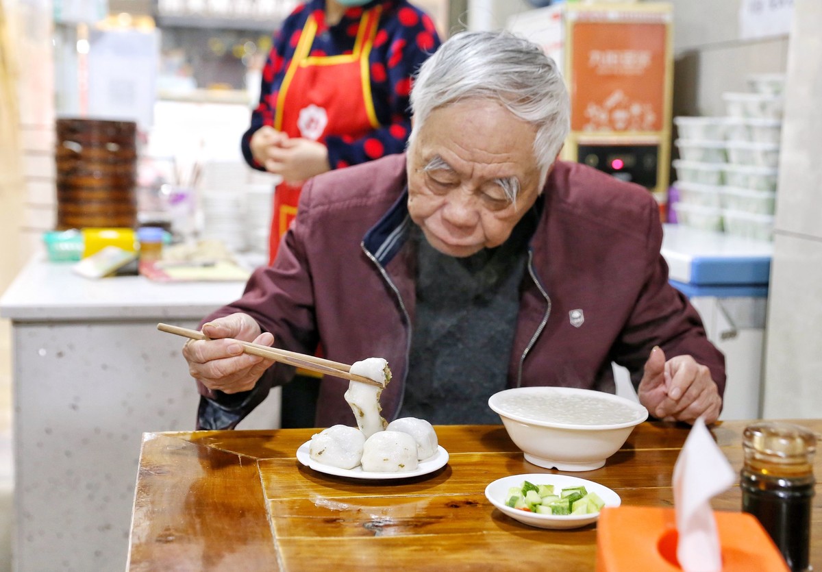 今年78岁的郭大坪就是他们的老顾客。“20多岁的时候,就喜欢来这家吃猪儿粑,馅料味道好,皮薄软糯,但不沾牙。”郭大坪咬了一口猪儿粑,感叹,几十年前一个猪儿粑大概1毛钱左右,早上有时候过来晚了,猪儿粑卖完了,当天就吃不到了。“现在猪儿粑每个2.5元,不管好久来,基本都可以吃得到。”