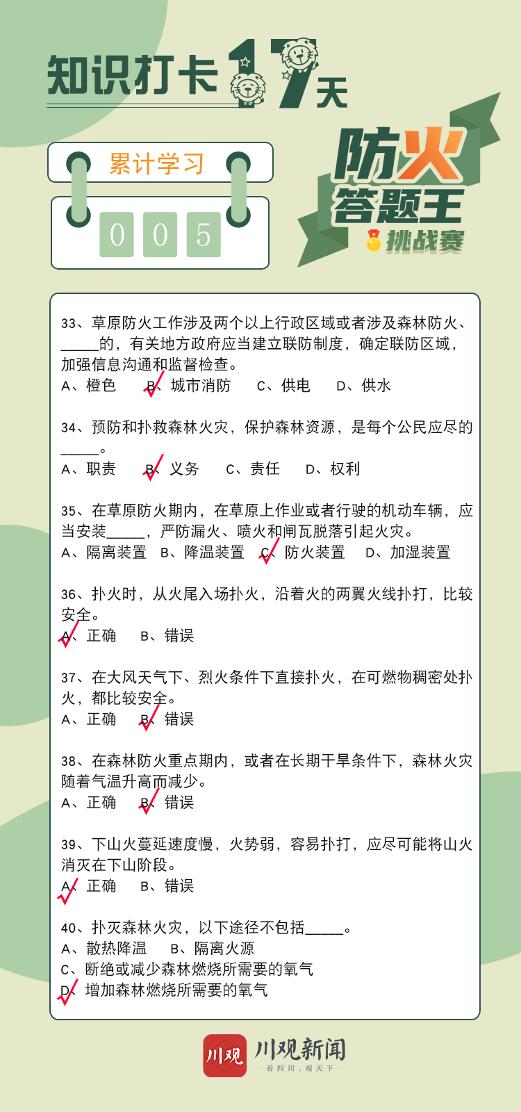 为响应小伙伴们的学习热情,川观新闻特别开设森林草原防火知识小课堂,每日派发知识卡。今日份的知识点已就位,赶紧来学习吧!