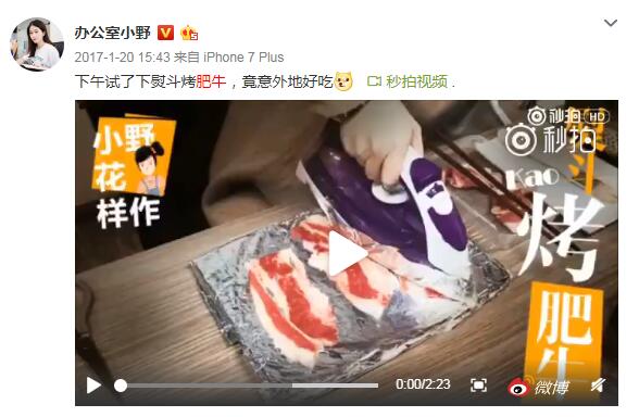 现在全球有8000万“粉丝”的“办公室小野”,在大家都正襟危坐的办公室“就地取材”,用饮水机煮火锅,用手心制作烤鱼,用食物来化妆,用椰子壳做工艺碗,用电钻做棉花糖,做出一些令人意想不到的菜肴,视频最高点击量全网超4亿。
