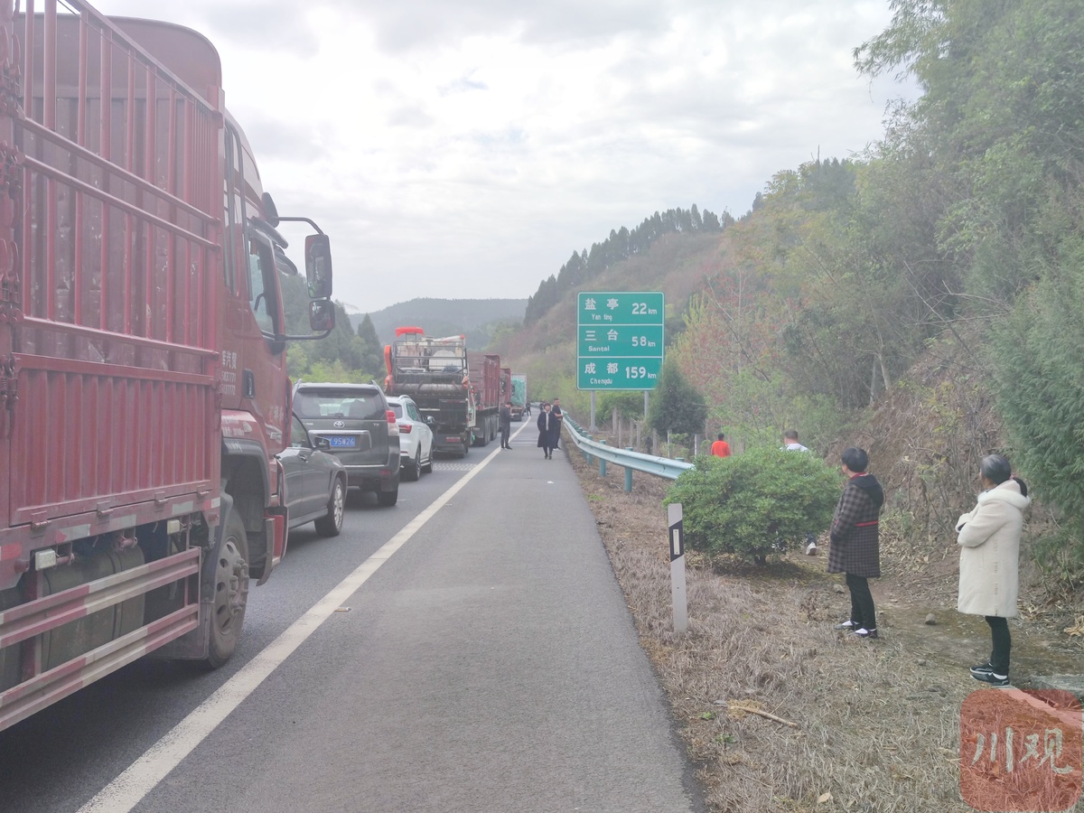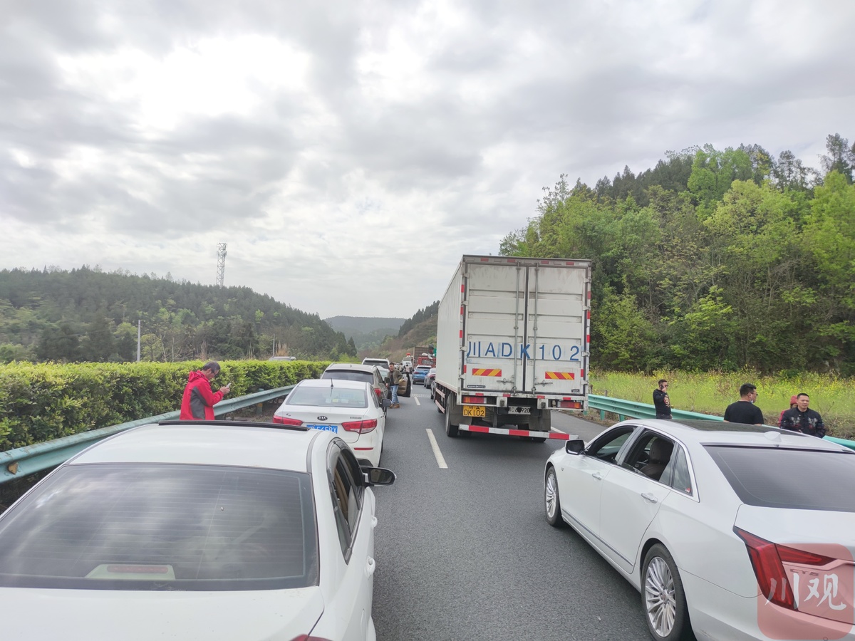 3月26日下午3:40左右,川观新闻记者途经成巴高速由广元返回成都,车辆行至绵阳市盐亭段时,发现前方出现了大范围拥堵。
