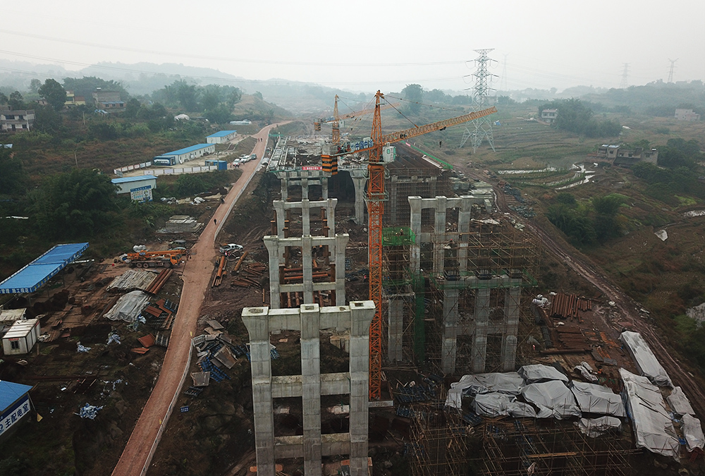记者在倒流河大桥施工现场看到,工人们正在进行桥梁主体施工。“倒流河大桥的建设关系到整个二环路能否按期通车。”泸州二环路(纳溪段)总承包部项目经理杜月春说。