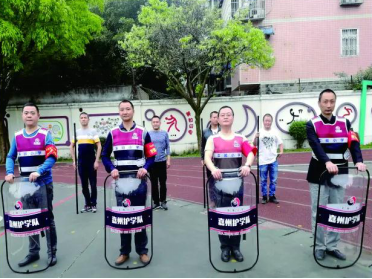 乐山市市中区公安分局为护学队成员统一配发了有LOGO标志的背心、雨伞、岗台、器械等,锻造整齐划一、着装规范、形象良好的护学队伍。同时,通过短视频教学和定期技能培训,护学队成员熟练掌握了警务技能,防范区域逐渐由“点上守护、被动防范”向“线上巡护、主动应对”延伸。
