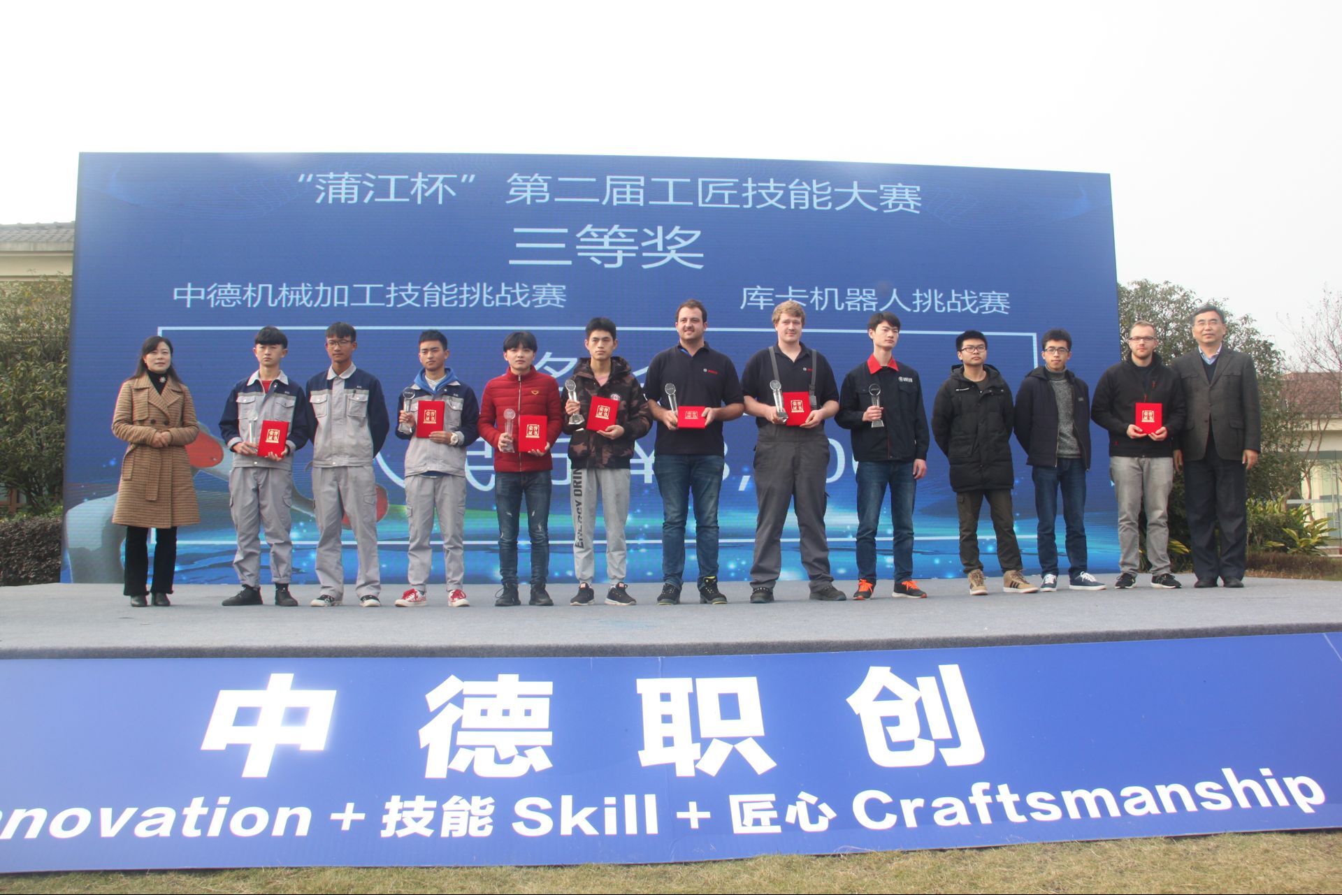 第二届工匠技能大赛分为“中德机械加工”“KUKA机器人挑战赛”,吸引了来自德国博世集团、德国兰茨胡特学院和全国近30所高校的40多支参赛队,经过2天的激烈角逐,中德机械加工和KUKA机器人挑战赛两个组别最终各评选出了1个一等奖、2个二等奖、3个三等奖和若干个优胜奖以及6个优秀指导教师奖。