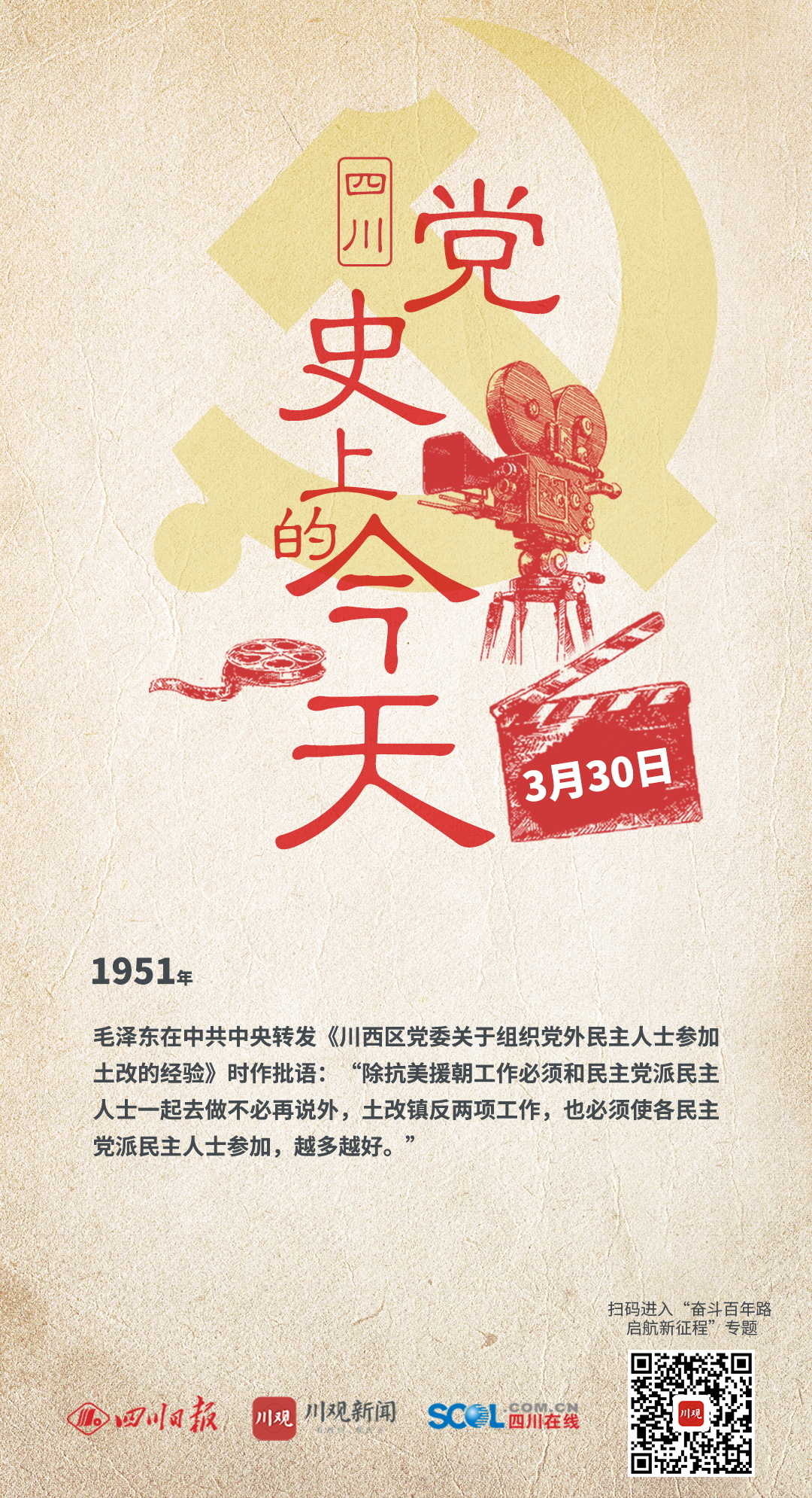 1951年 毛泽东在中共中央转发《川西区党委关于组织党外民主人士参加土改的经验》时作批语:“除抗美援朝工作必须和民主党派民主人士一起去做不必再说外,土改镇反两项工作,也必须使各民主党派民主人士参加,越多越好。”