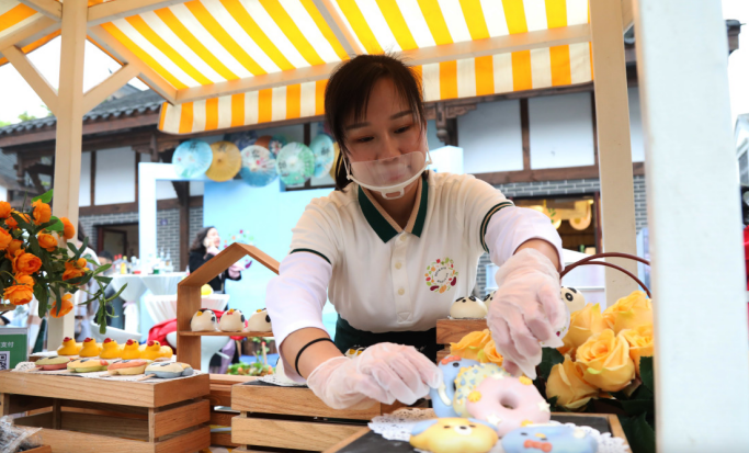 和面、撒糖、过油,黄舣镇和泰安街道拾起旧时记忆,开设风雪糕、荷花酥DIY体验场馆,游客感受的不仅仅是成品带来的味蕾欢愉,更多的是制作过程中的快乐体验。