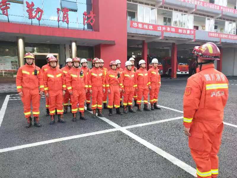 12月16日13点13分接到四川省消防总队指令,泸州市消防支队第一批增援力量共集结5车28人于13时55分出发,第二批增援力量5车26人于14时18分出发。