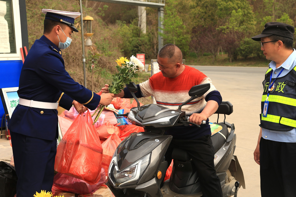 为防范祭祀用火引发森林火灾。队伍指战员在龙泉山五洛路口设卡检查进山人员和车辆,并用鲜花替换市民携带的香蜡纸钱。以此倡导市民文明祭祀,最大限度减少野外用火,有效杜绝森林火灾的发生。