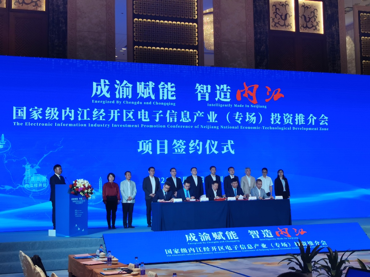 推介会上,内江经开区签下新型触控显示模组生产基地、成渝政务云异地灾备中心及内江超算中心以及四川富乐德三期项目等3个电子信息产业项目,总投资21亿元。