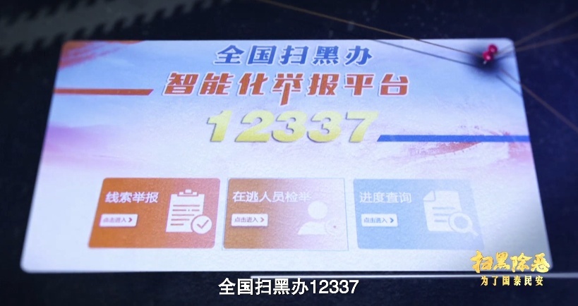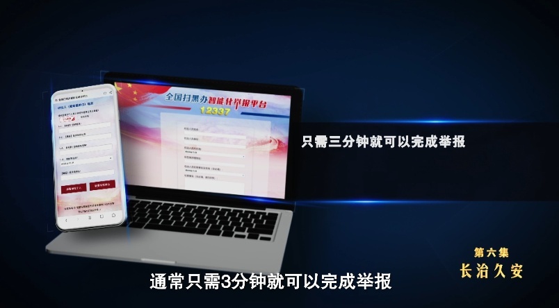 全国扫黑办开通的12337智能化举报平台,是发现黑恶犯罪线索的“千里眼”,专项斗争期间,举报平台共收到群众举报线索近36万条。坚持依靠人民群众持续推进扫黑除恶,全国扫黑办建立了智能公开的举报奖励机制,让12337智能化举报平台常态化运行,在这个平台上,群众使用手机、电脑终端通常只需3分钟就可以完成举报,通过智能化处理之后,最短一天时间即可下发转办。